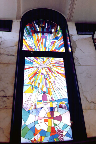 Vetrata raffigurante la resurrezione di Cristo collocato in una cappella privata.