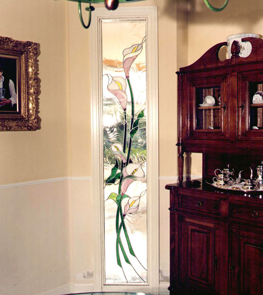 La luce della vetrata ha valorizzato il soggiorno con il suo stile.