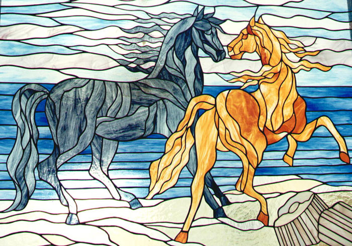 Quadro vetrata "Cavalli".