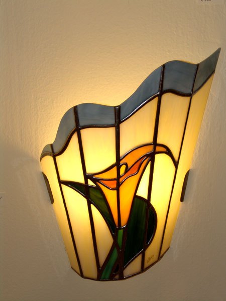 Applique Calla di grande effetto con luce morbida. realizzata con vetri marmorizzati