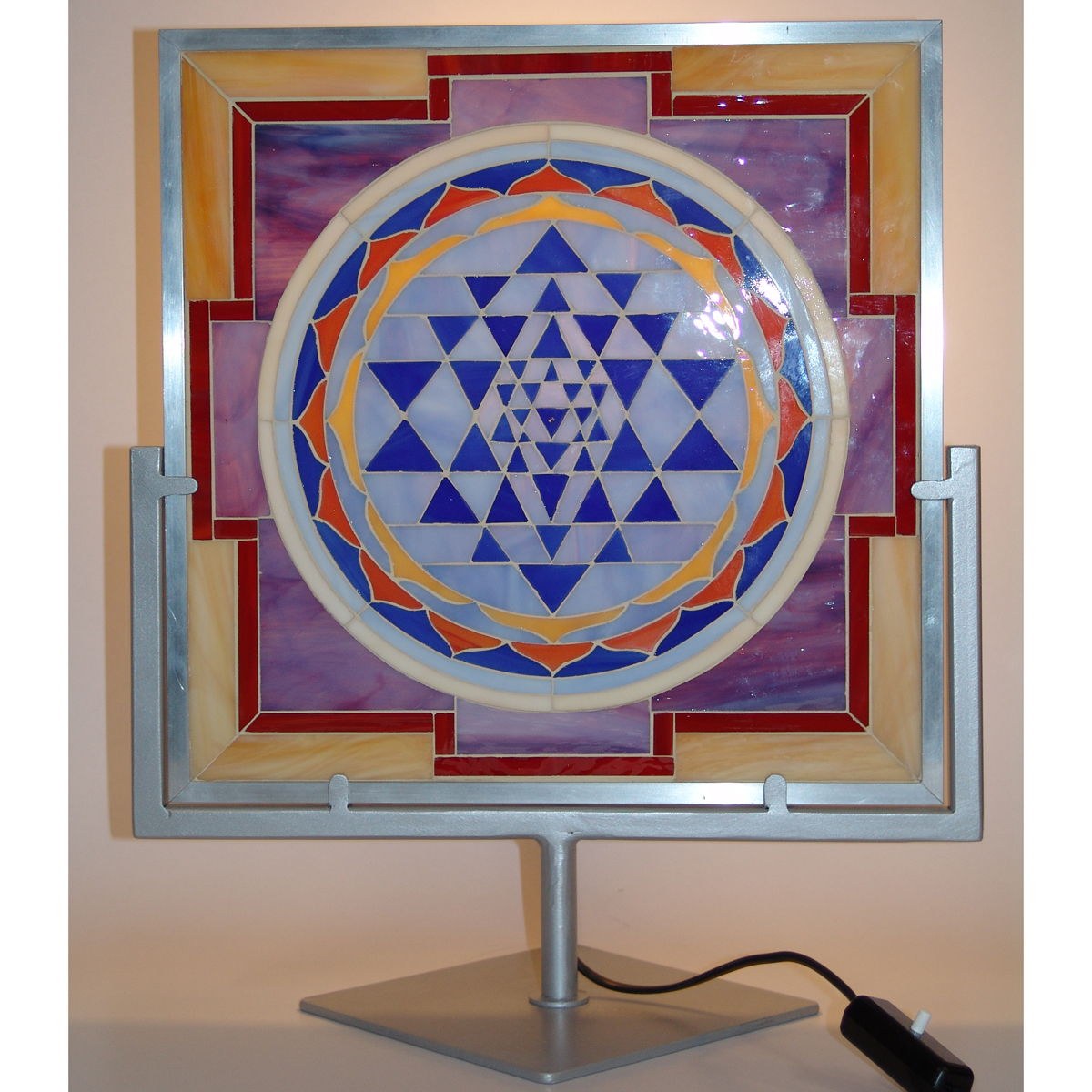 Composizione di mosaico su base di vetro diffusore e cornice in alluminio di cm. 35,5 x cm. 35,5